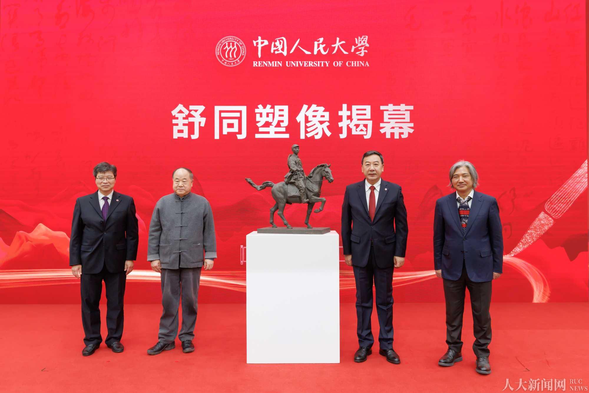 张东刚、林尚立、莫言、吴为山共同为舒同塑像揭幕。